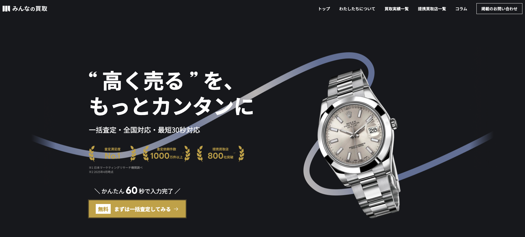 みんなの買取は、ブランド品や貴金属、家電、ホビーなど幅広いジャンルの買取情報を掲載する買取比較サイトです。各買取サービスの特徴や口コミ、査定方法などを分かりやすく紹介し、自分に合った買取サービス選びをサポートします。